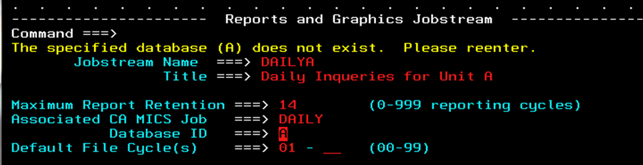 Using MICF Production Reporting Administration to remove a query from running in the DAILYRPT job stream. Selected 'DAILYA' and received error message: