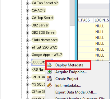3. Right click on the JDBC Endpoint Type item on the right Provisioning Servers Tree pane and select Deploy Metadata to update Metadata into Provisioning Server.