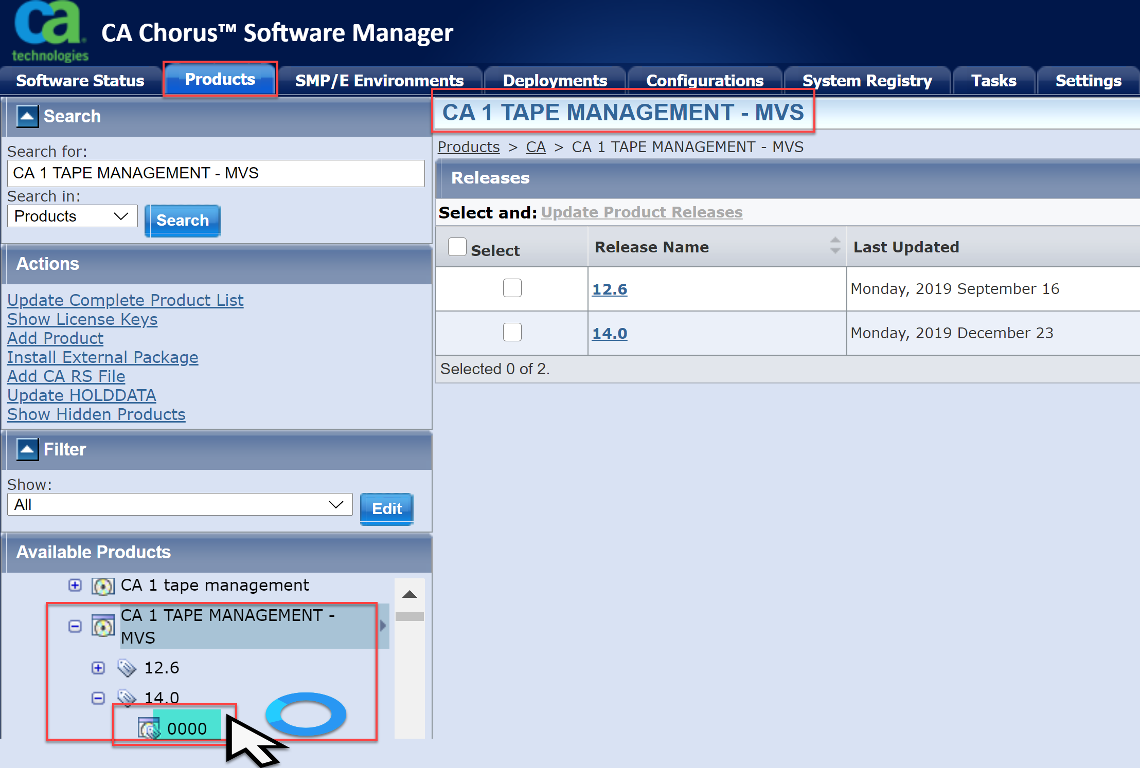 1. Click the Products tab and find CA 1 TAPE MANAGEMENT -
