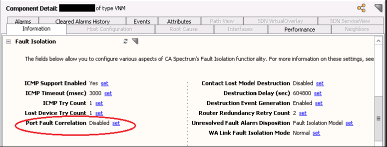 1. Disable Port Fault Correlation in the Fault Isolation subview of the VNM model