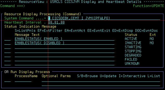 when we issue F CICS,CEMT SET JVM(DFHWLP) EN / DIS to enable or disable JVM, below is the log, we define a LOGICAL resource in monitoring, with status message "BEING ENABLED" as "STARTING", but it never show status as STARTING.