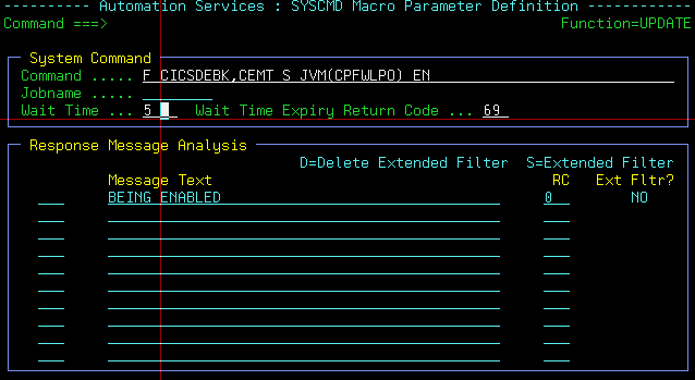 It will return RC=0 if it sees "BEING ENABLED" otherwise it will timeout after 5 seconds and return RC=69