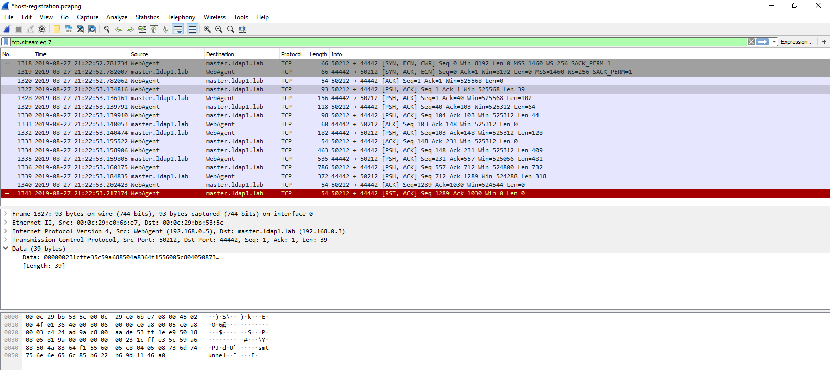 Once TCP Handshake is complete, WebAgent will send the Registration Information. Only 1 TCP connection is required to complete host registration.