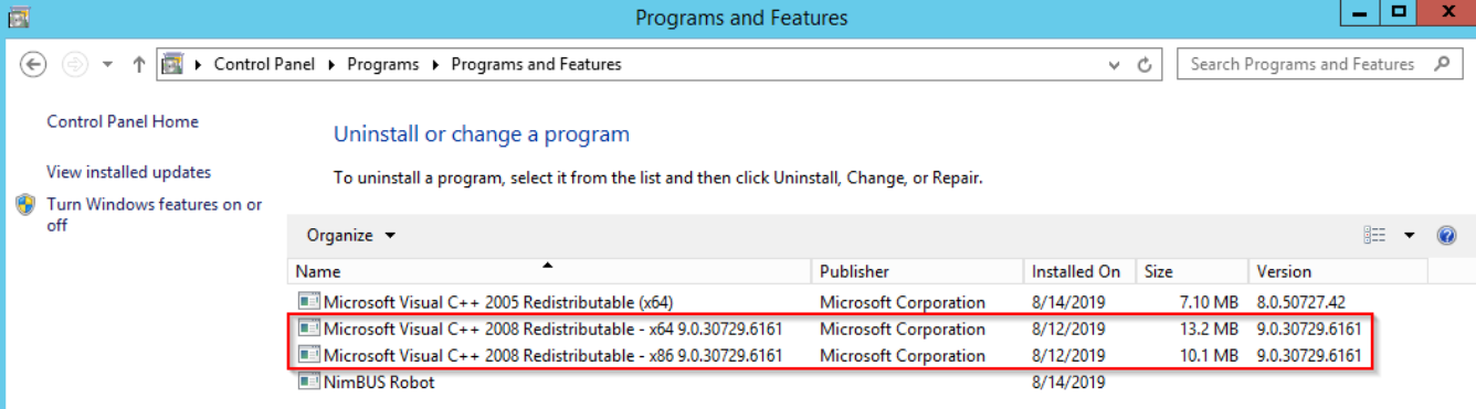 Possible cause would be the missing Microsoft Visual C++ 2008 Redistributable x64 and x86 packages.