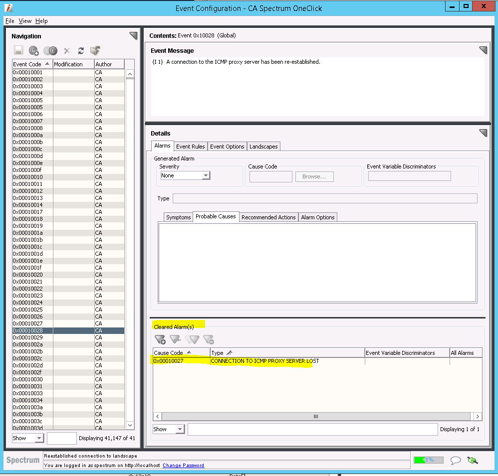 Important! Do not customize the following list of event codes as this will adversely affect Spectrum’s fault isolation algorithms which leads to undesirable results.