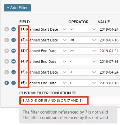 With the removal of the the quick filter fields, the custom filter logic becomes invalid as the advanced fields have been renumbered starting with 1, however the custom filter logic still references the original numbering
