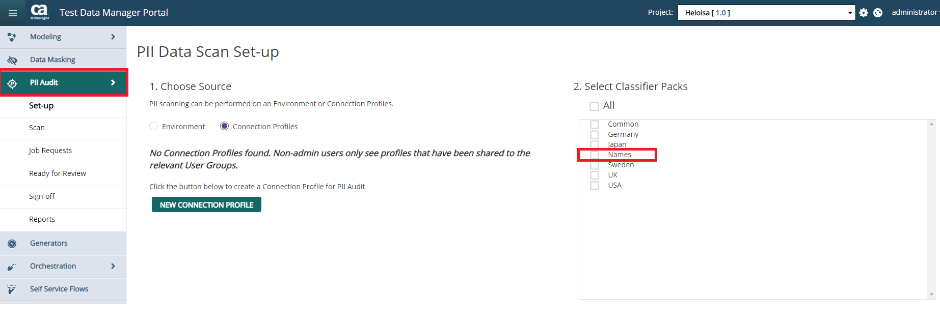 However, the classifier pack is not available under PII Audit - PII Data Scan Set-up.