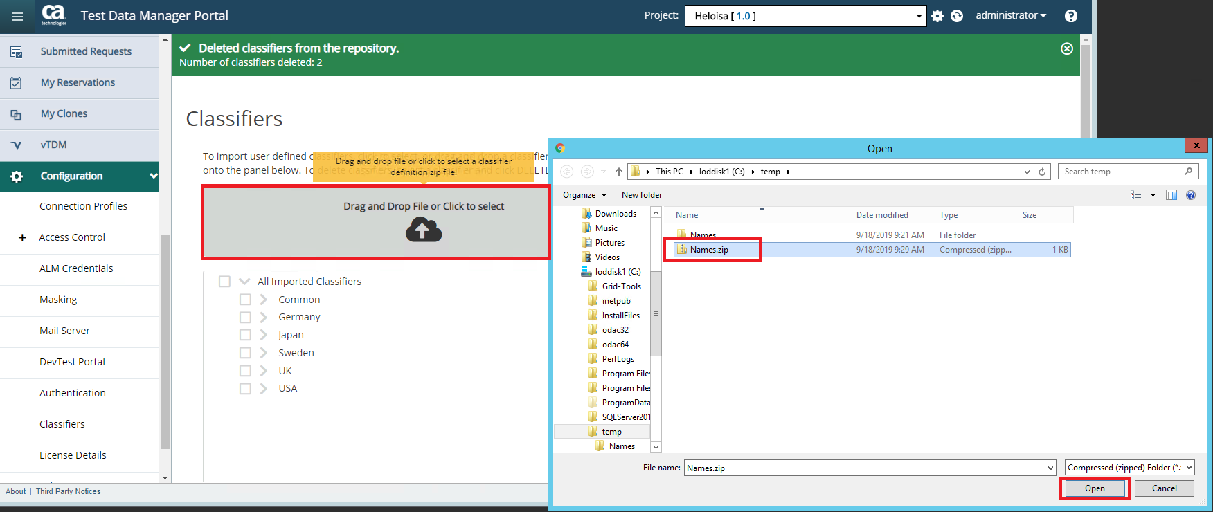 The Classifier pack is imported in the Portal, under Configuration, Classifiers.