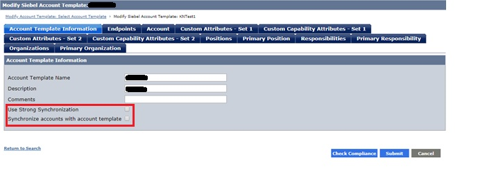 Note: When propagating from a weak synchronization account template, changes that would remove or lower capabilities could leave some accounts unsynchronized. Remember that with weak synchronization, capabilities are never removed or lowered. Without consulting other templates for an account, the propagation does not consider if weak synchronization is sufficient.