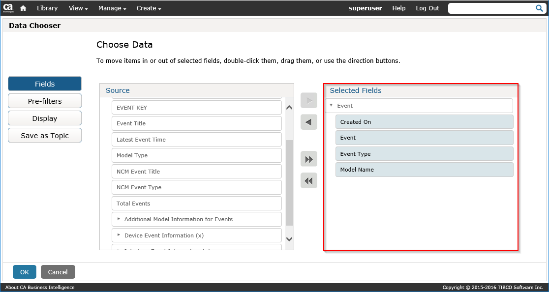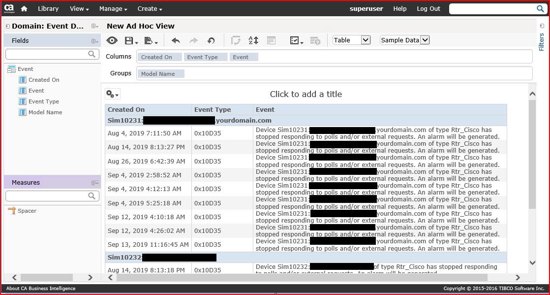 Select the following Source (Created On, Event, Event Type, Model Name)