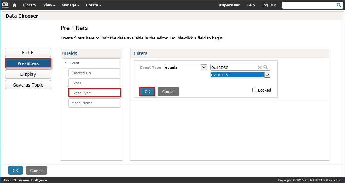 In Pre-filters select the Event Type and filter by 10d35 (for instance), then click on OK button.