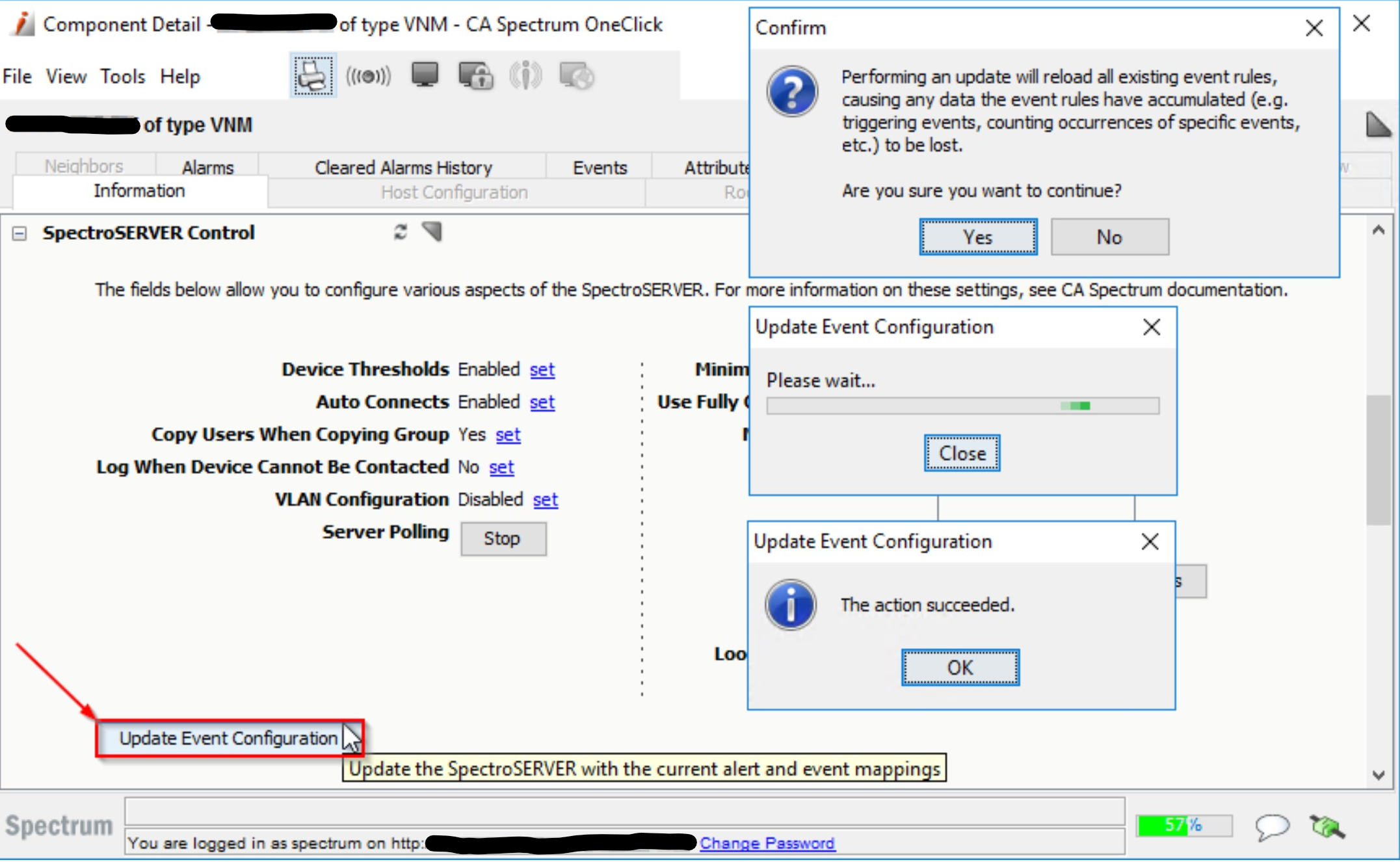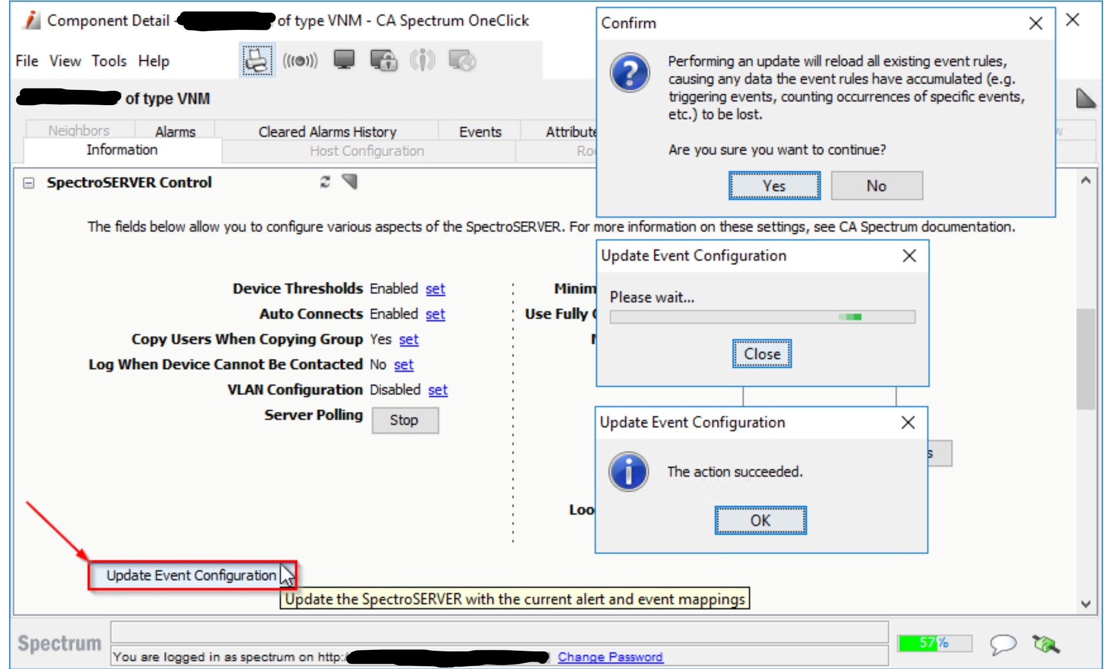 3) Click on "Update Event Configuration" button under the SpectroSERVER Control subview of the VNM model to load the AlerMap file change into the SpectoSERVER memory.