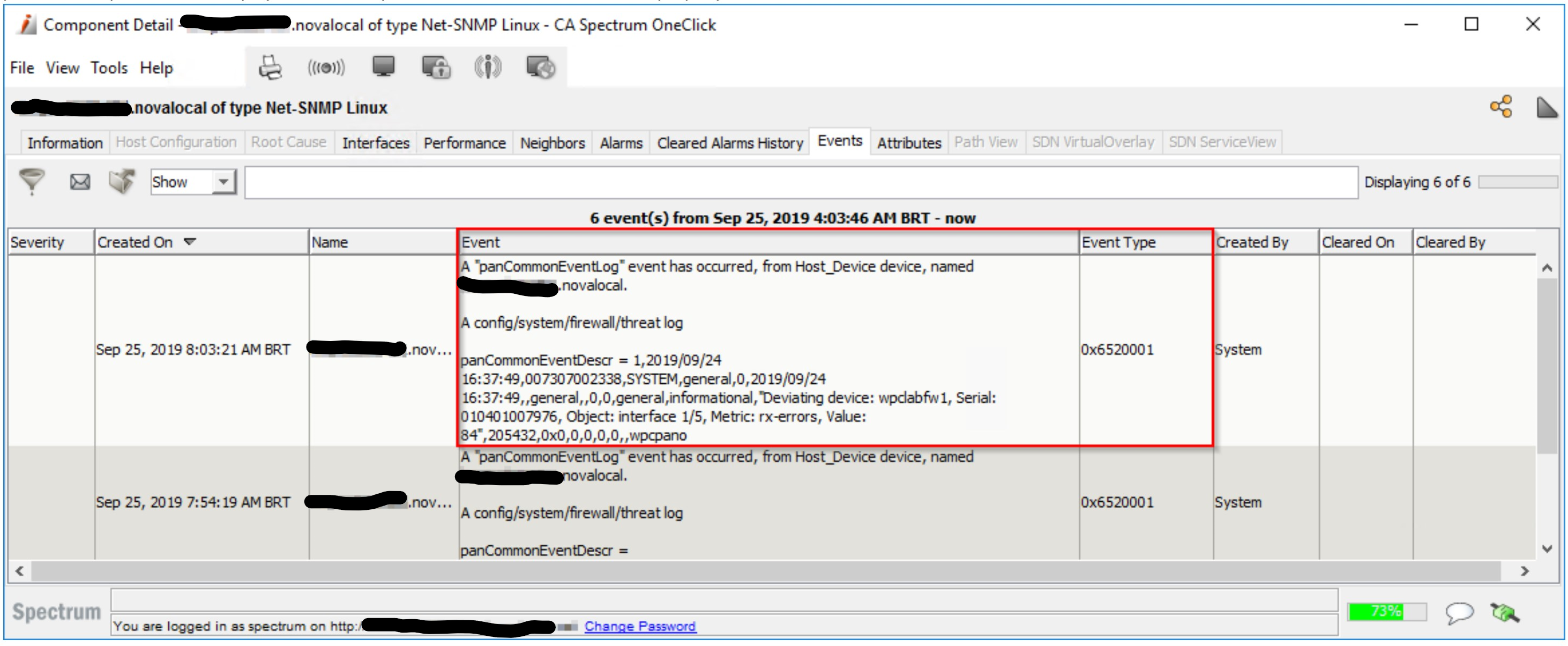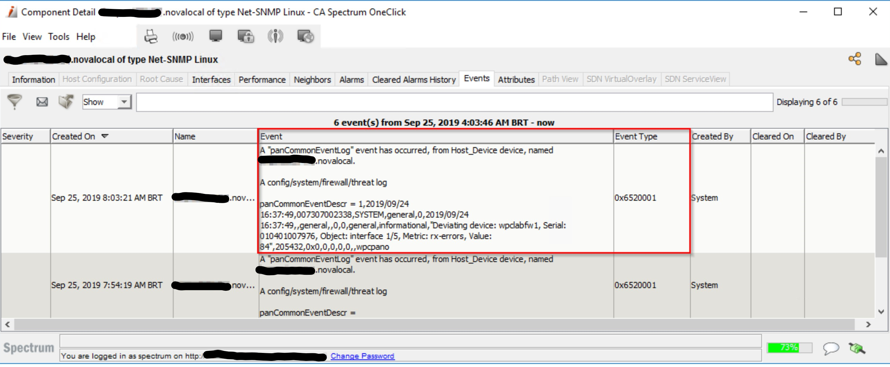 We have a Palo Alto device for which we are trying to configure trap events in Spectrum. The out of the box trap support for the "panCommonEventLog" OID 1.3.6.1.4.1.25461.2.1.3.2.0.1 is event code 0x06520001.