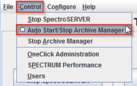 Where the "Auto Start/Stop Archive Manager" setting is saved when it is modified in the SCP (Spectrum Control Panel)