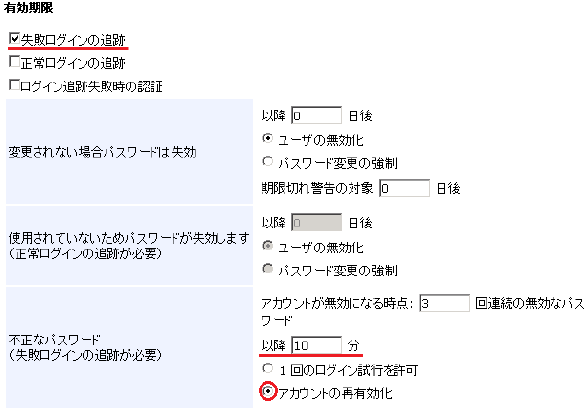 無効となったアカウントが再有効化されるためには、パスワードポリシーで設定されている期間、