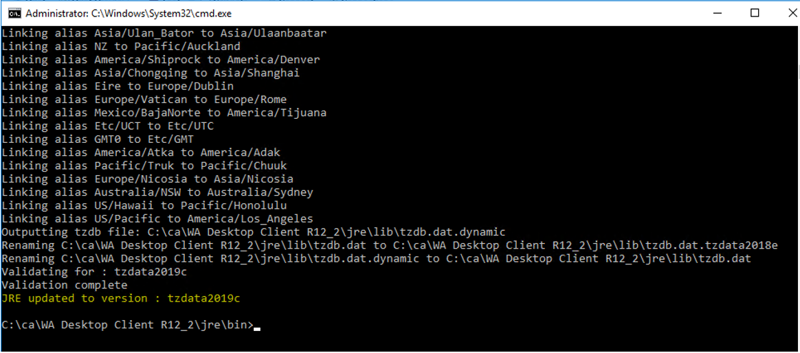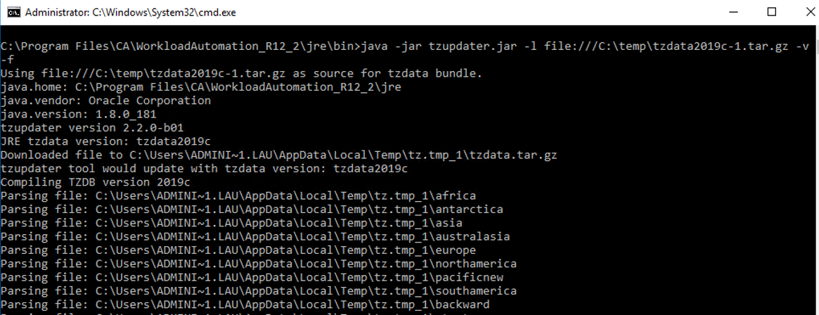 java -jar tzupdater.jar -l file:///C:\temp\tzdata2019c-1.tar.gz -v -f