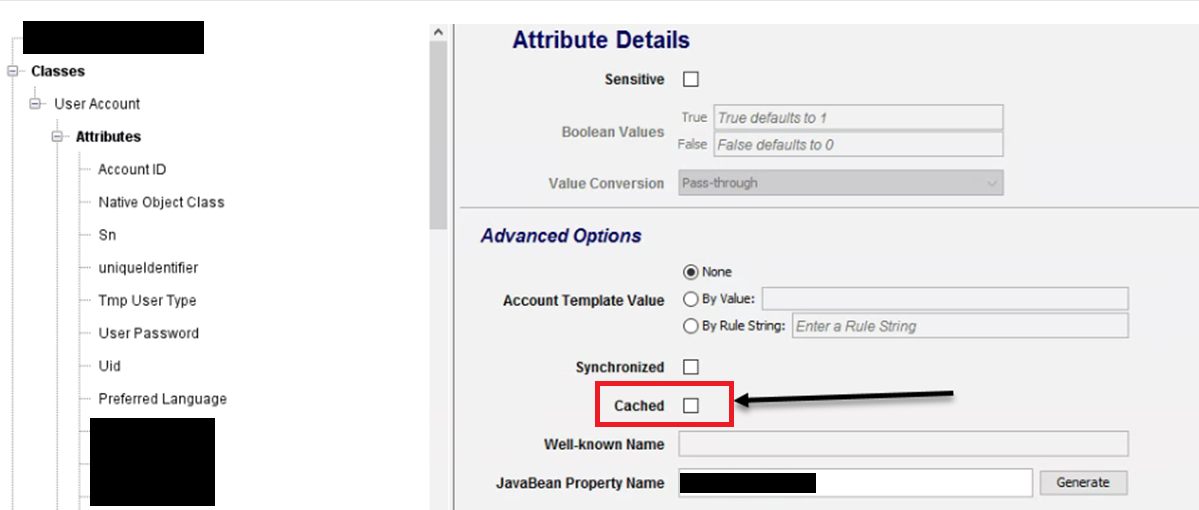 By default the Explore process on Endpoint would not retrieve and store all of the attributes mapped in a Connector Xpress project. For each attribute mapped in Connector Xpress if you choose to mark the "Cached" checkbox then the Provisioning Server would retrieve and store that value in the Provisioning Directory. Note that if using an attribute as part of a Custom Correlation Rule or as part of an Endpoint Attribute Mapping for the Explore/Correlate/Update then Provisioning Server would also retrieve and store that value in the Provisioning Directory.