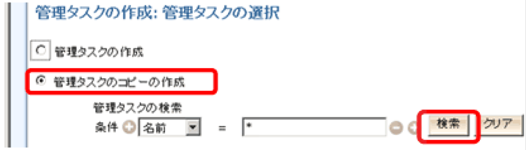 2. [管理タスクのコピーの作成]をチェックし、[検索]をクリックします。