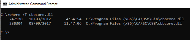 In example above, the file C:\Program Files (x86)\CA\DSM\Bin\cbbcore.dll should be deleted.