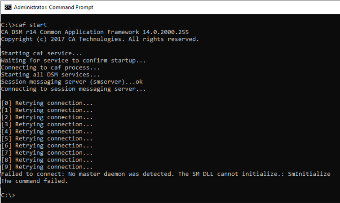 Failed to connect: No master daemon was detected. The SM DLL cannot initialize.: SmInitialize