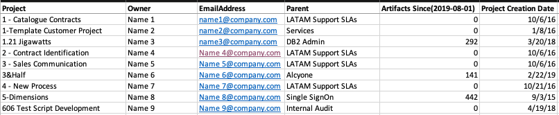 I would like get list of workspaces and projects which have not been used (are inactive) for the last 5 years. We can either close/delete, once we found the inactive workspaces / projects, but is there a way to identify them?