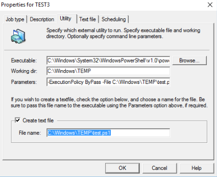 Parameters: -ExecutionPolicy ByPass -File C:\Windows\TEMP\test.ps1