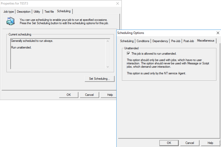 Check the box "This job is allowed to run unattended"