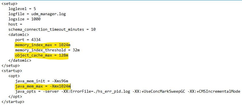***Adjust the memory setting so that memory_index_max and object_cache_max do NOT exceed 75% of the java_mem_max***