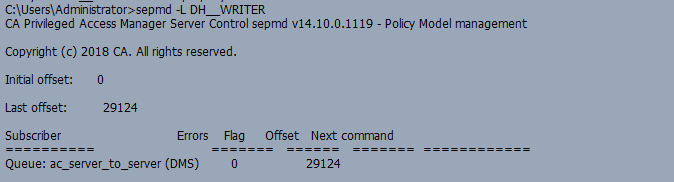 8) sepmd -L DH__WRITER (Verify the DH__WRITTER is set properly)