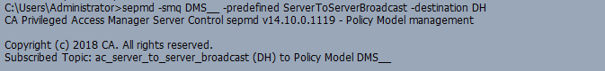 4) sepmd -smq DMS__ -predefined ServerToServerBroadcast -destination DH (Adds the topic subscription to the DMS)