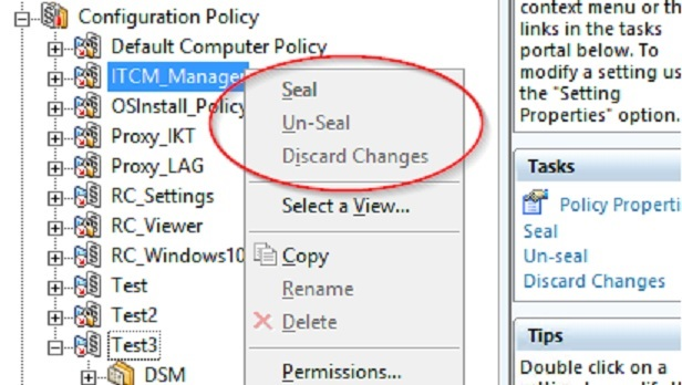 Being connected directly to the Enterprise Manager, all the Configuration Policies appear with a red arrow, which indicate that the policy is inherited, but this is not right, because the DSM Explorer is being opened directly on the EM.