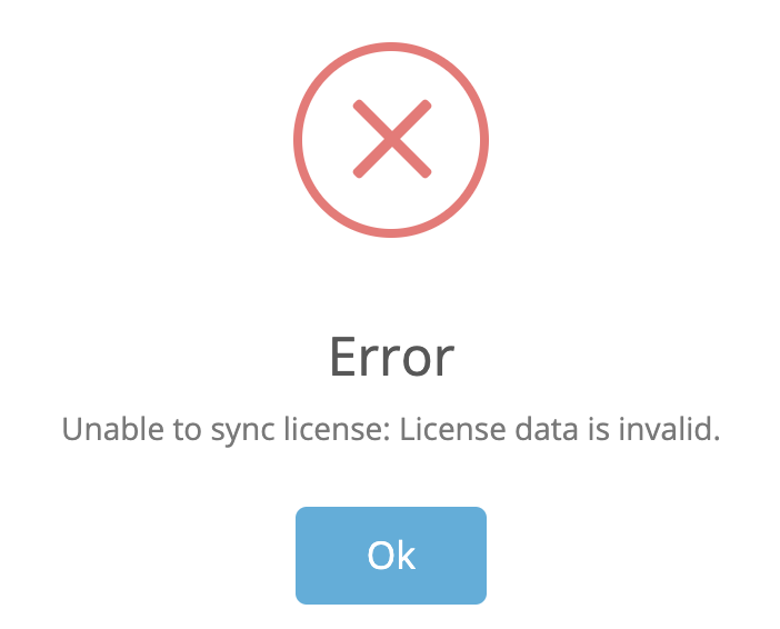 Each license file has a public key embedded at the end that is used as a checksum to ensure that the license file is valid. When the license is synched, the contents of the license are checked against this key to ensure that the file is not corrupt and has not been tampered with. If a single character in the license file differs from what the public key expects, then this error can be displayed when trying to synchronize the license.