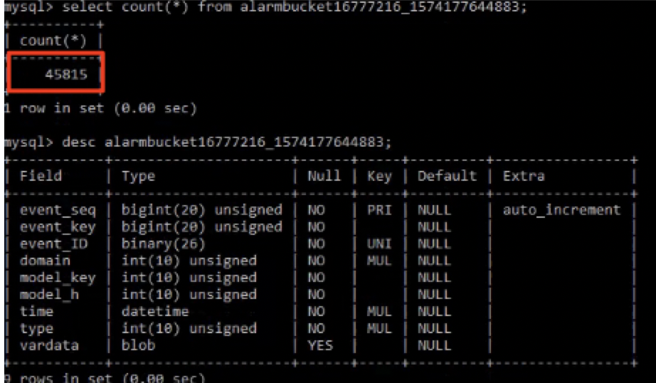 This example query shows this alarm bucket has 45815 events which are still being processed: