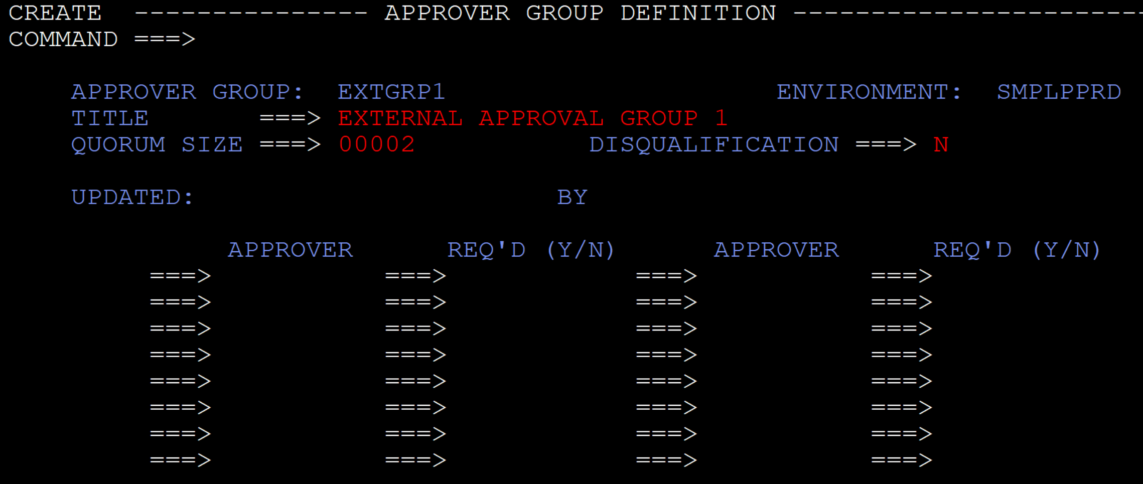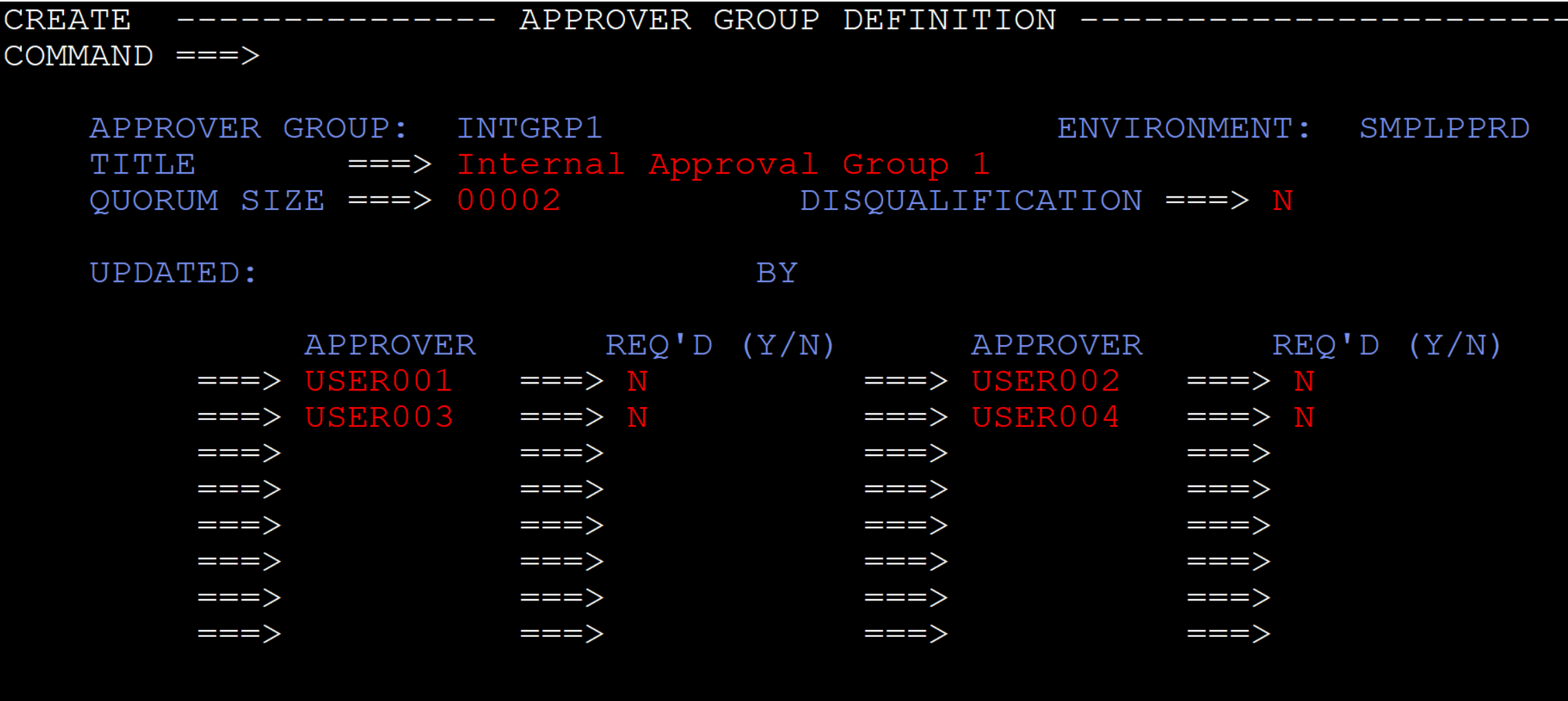 Update the existing Internal Approver group – remove all the USERIDs of the approvers. For an externally defined Approver group the Quorum size the acceptable values are 0 – 32760.