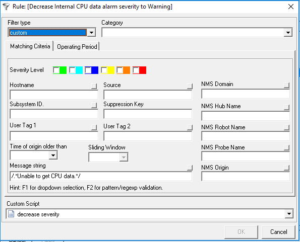 Example message filter: /.*Unable to get CPU data.*/