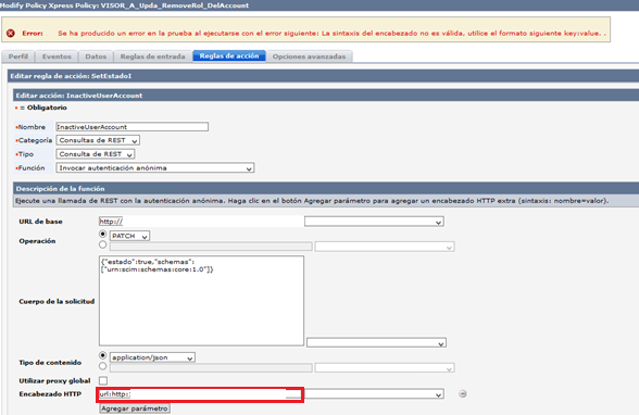 When entering an HTTP Header value, it must only contain a single colon “:” otherwise it will fail with an error.