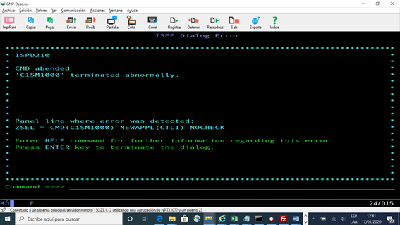 Abend 047000 hex occurred processing command 'C1SM1000'