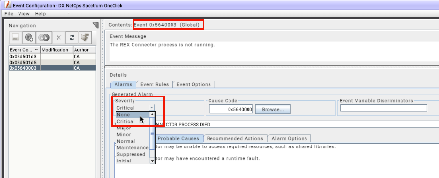 You will also need to disable the alarm from generating on event 0x5640003 in the Event Configuration Editor. Set the Alarm to None.