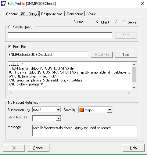 The goal is to generate sql_reponse probe alarms when the expected snmpcollector QOS drops.