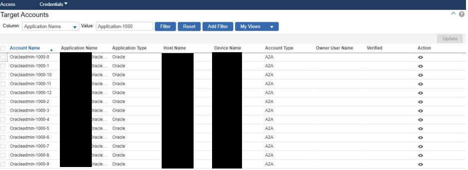 At the top, they can use filters, save views etc. to get to the correct Oracle instance (Application Search) or Account they wish to see. Click on the eyeball, and they will see the credential.
