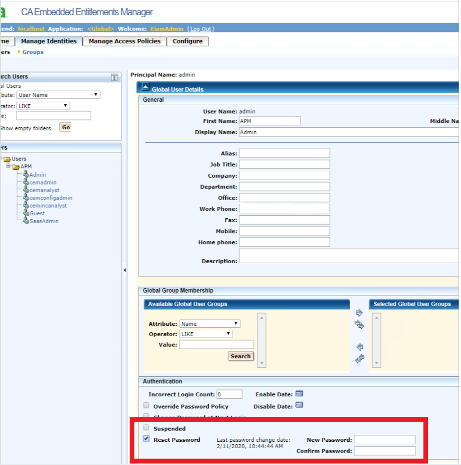 This document outlines how to reset the admin user password in APM when using local, EEM, EEM/LDAP or LDAP security methods.