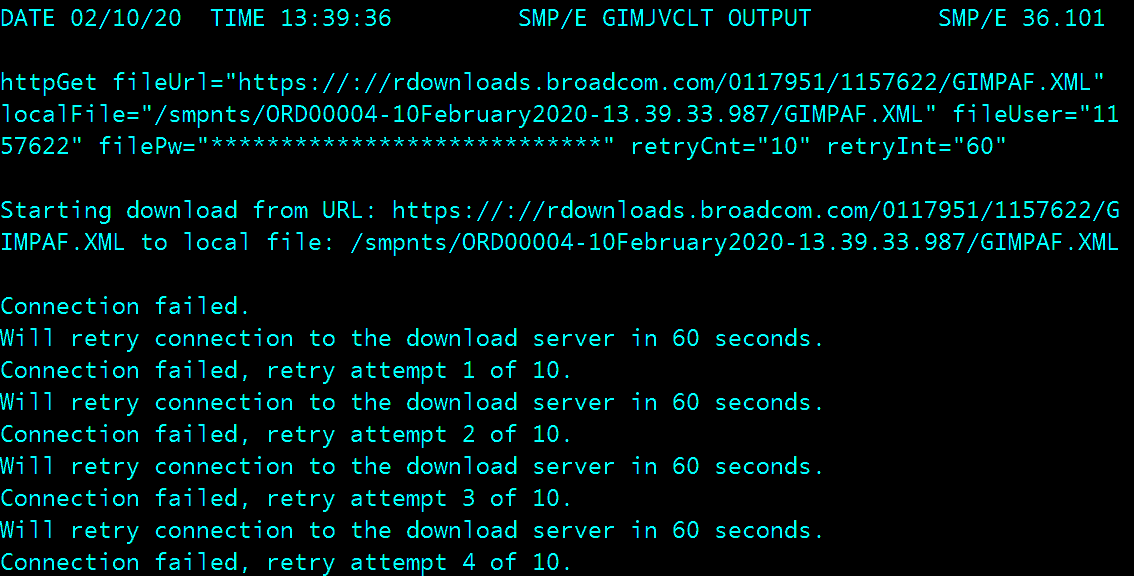 SMP/E Internet Service Retrieval failing - GIM69207S (Connection refused) UnknownHostException