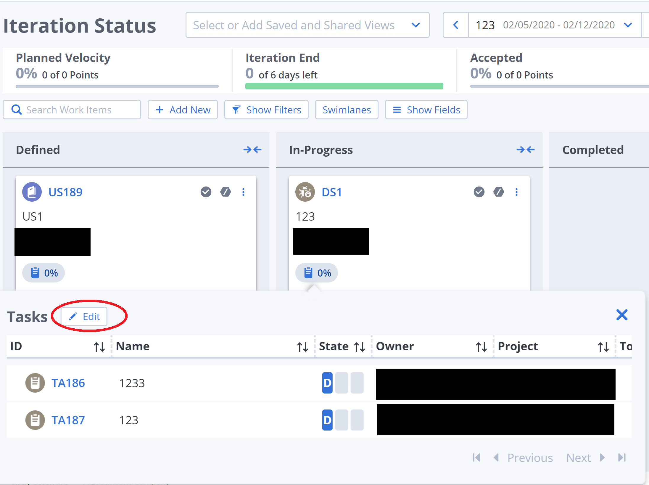 While clicking on Edit button in the tasks of a User Story in the Iteration Status page using Board View: