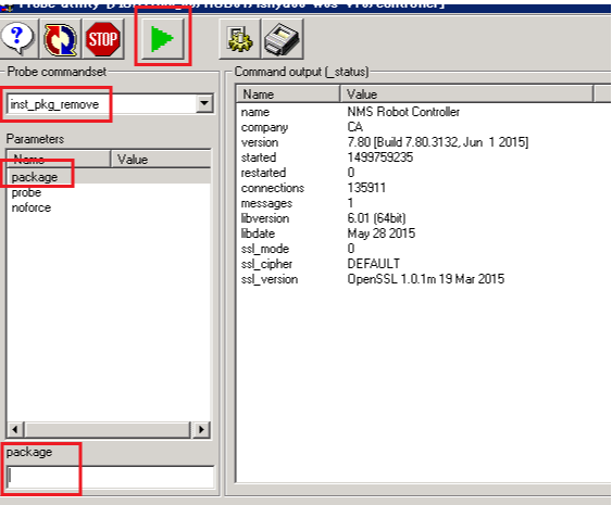 2. Select 'inst_pkg_remove' from the probe commandset dropdown.