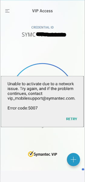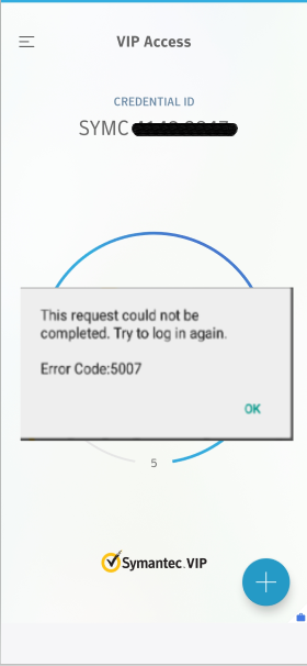 Symantec VIP Access for Android 3.0.1 and older - Error Code: 5007
