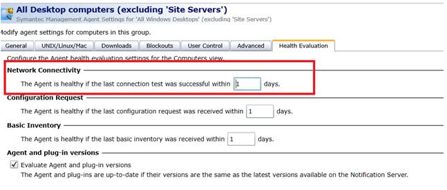 Part of the healthy Sym Agent criteria is a "Network Connectivity" section, as highlighted below. It says “The Agent is healthy if the last connection test was successful within X day”