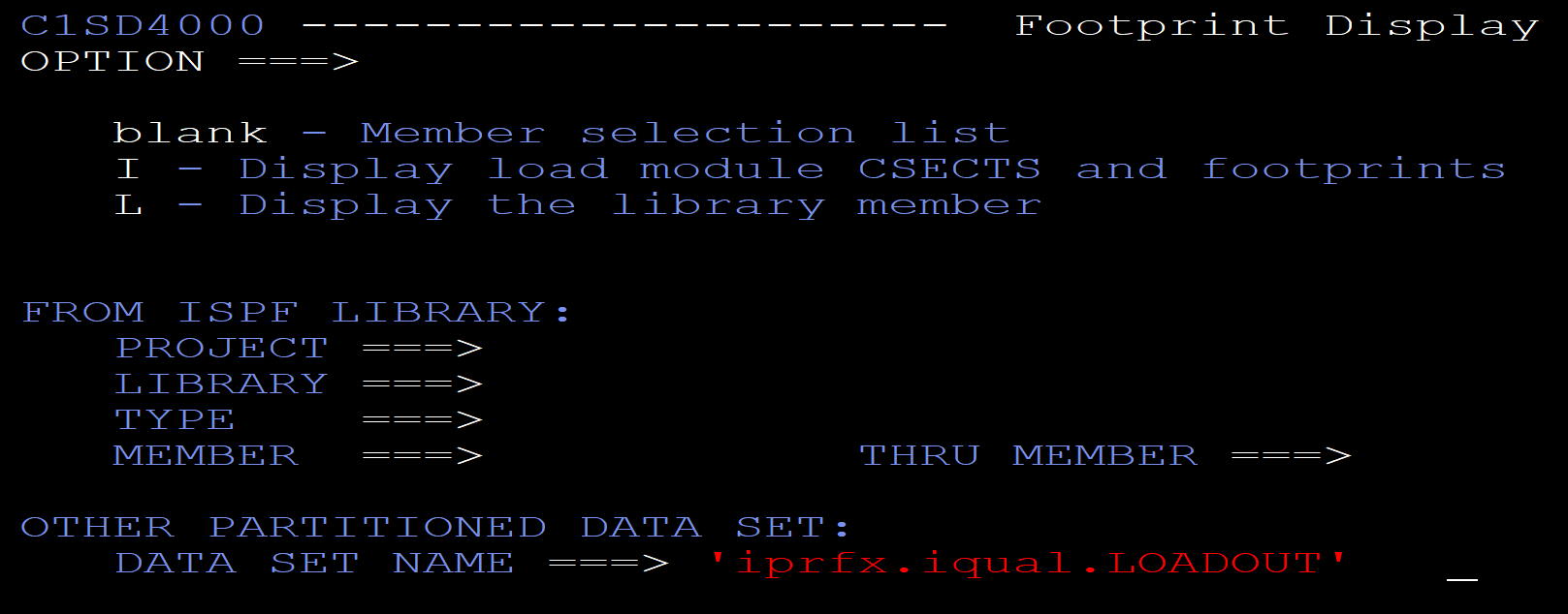 FOOTPRINT 'iprfx.iqual.LOADOUT' (loadlib that will be footprinted)