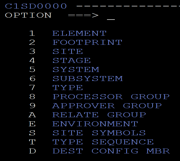 Bring up Endevor and select 1 - DISPLAY