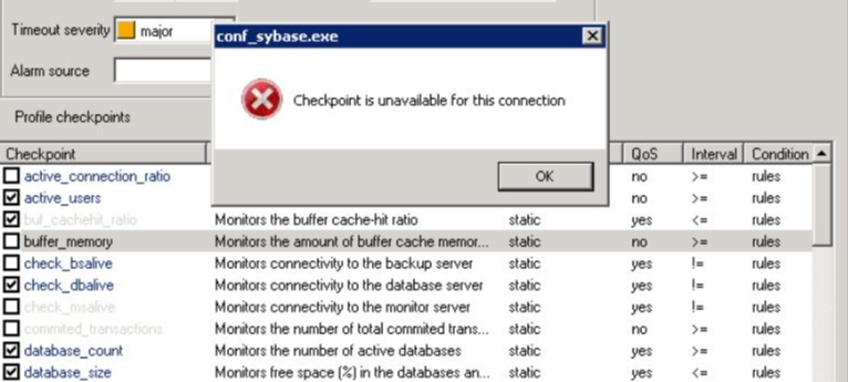 It is observed that few of the sybase DB checkpoints were grayed out in Sybase ASE version 15.7 and later.