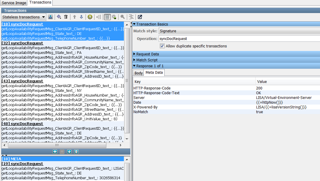 - Customize the VSM to use multiple VSI's (add additional VS Image response selection steps to use different VSI's). For example, you are using 3 VSI's. Add NoMatch=true to META transactions and also to unknow transactions in first 2 VSI's. See the below screenshots 1 & 2 for reference. Leave 3rd VSI as is.